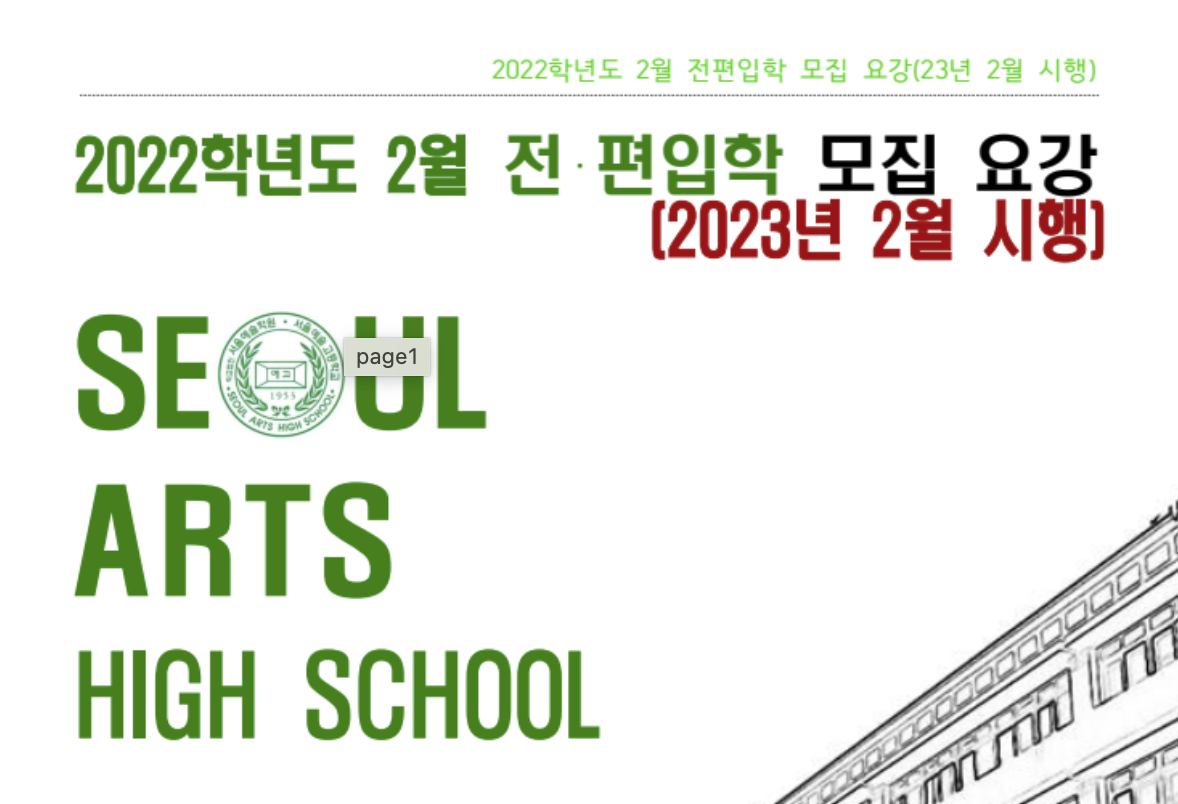 2022학년도 서울예술고등학교 2월 전편입학 입시곡 등 [23년 2월 시행] (서울예고)